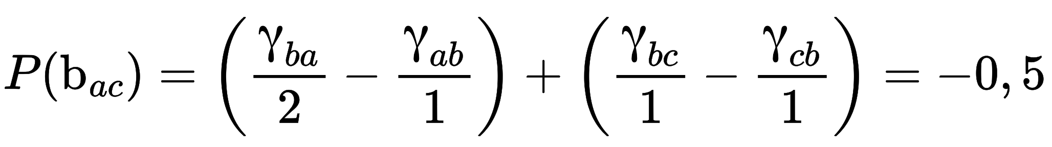 Weil aus As Sicht die Pfadgelgenheiten, die B und C jeweils zum Kinderspiel bieten, austauschbar sind, addieren wir für B und C jeweils eine 1 in den Nenner, womit ihre Pfadgelegenheiten nur noch die hälfte wert sind.